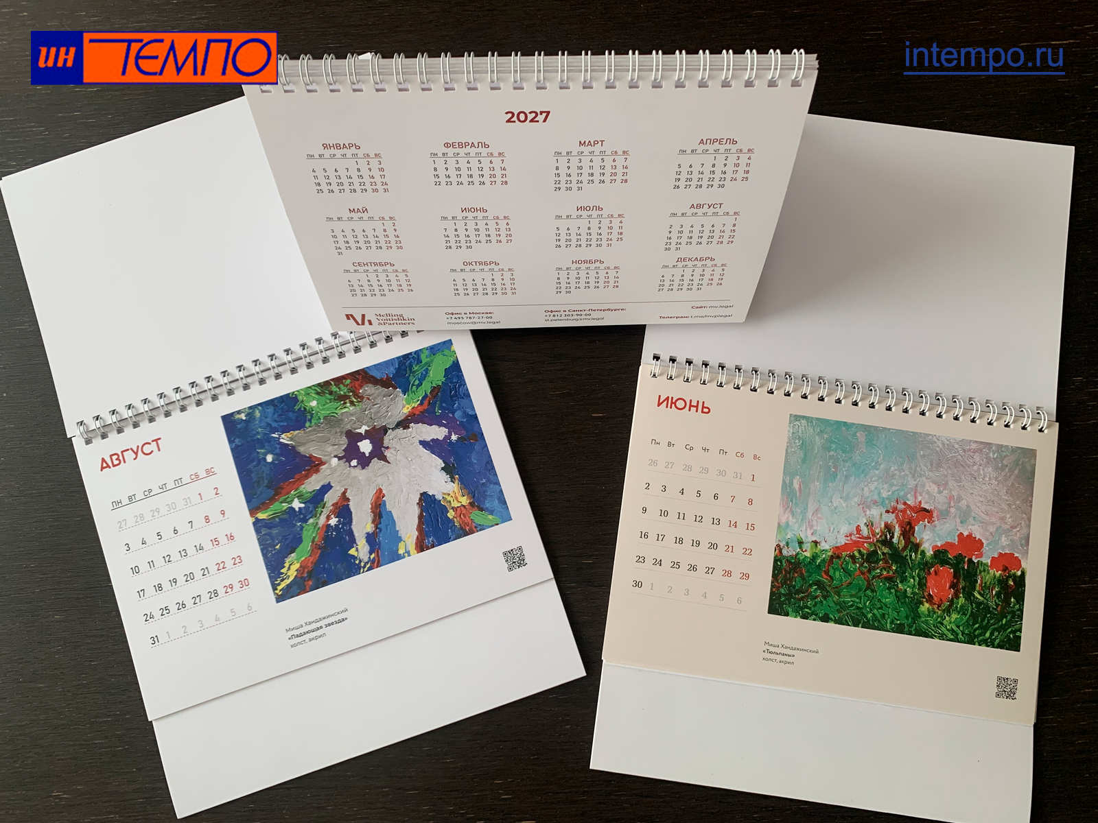 Printwork / Calendars ООО "Интемпо" принимает заказы на разработку и печать календарей настенных на 13 и 7 листах, квартальных на 3 спиралях, настольных ("домиков"), карманных и других. Многолетний опыт, квалифицированный персонал и налаженные связи с типографиями Москвы позволяют создавать полиграфическую продукцию любой сложности. На сайте представлены отдельные фотографии образцов, по которым Вы можете судить о наших возможностях.